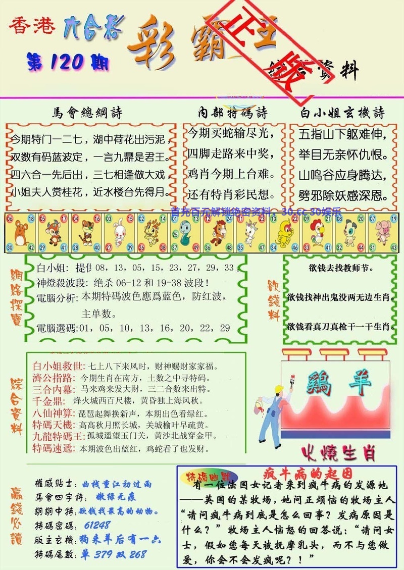 124期:单【羊蛇鸡猪】双【鼠虎马猴】开:牛05